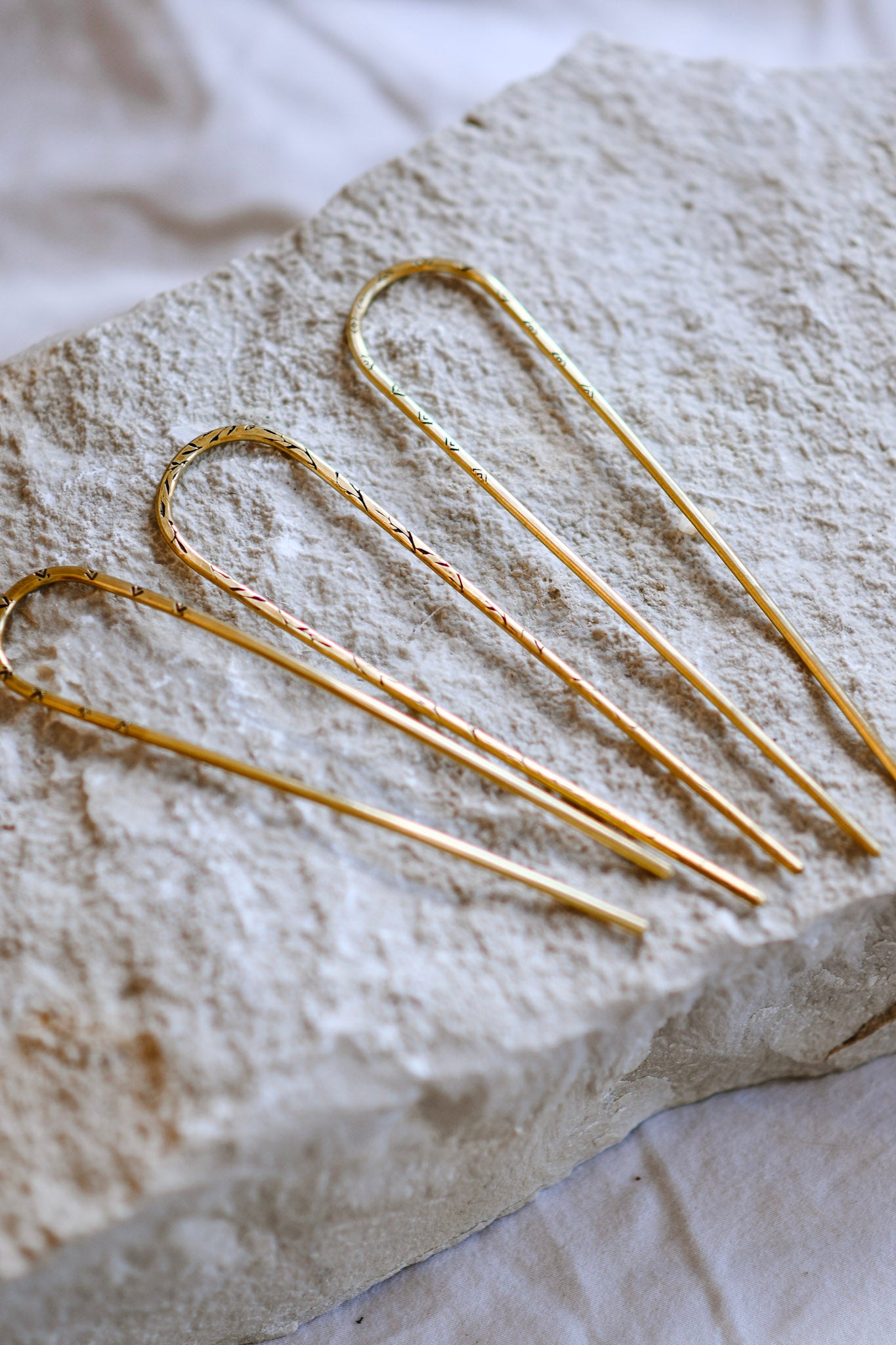 Locally made in West Michigan. Medium sized brass hair pin, each one unique and a piece of art.