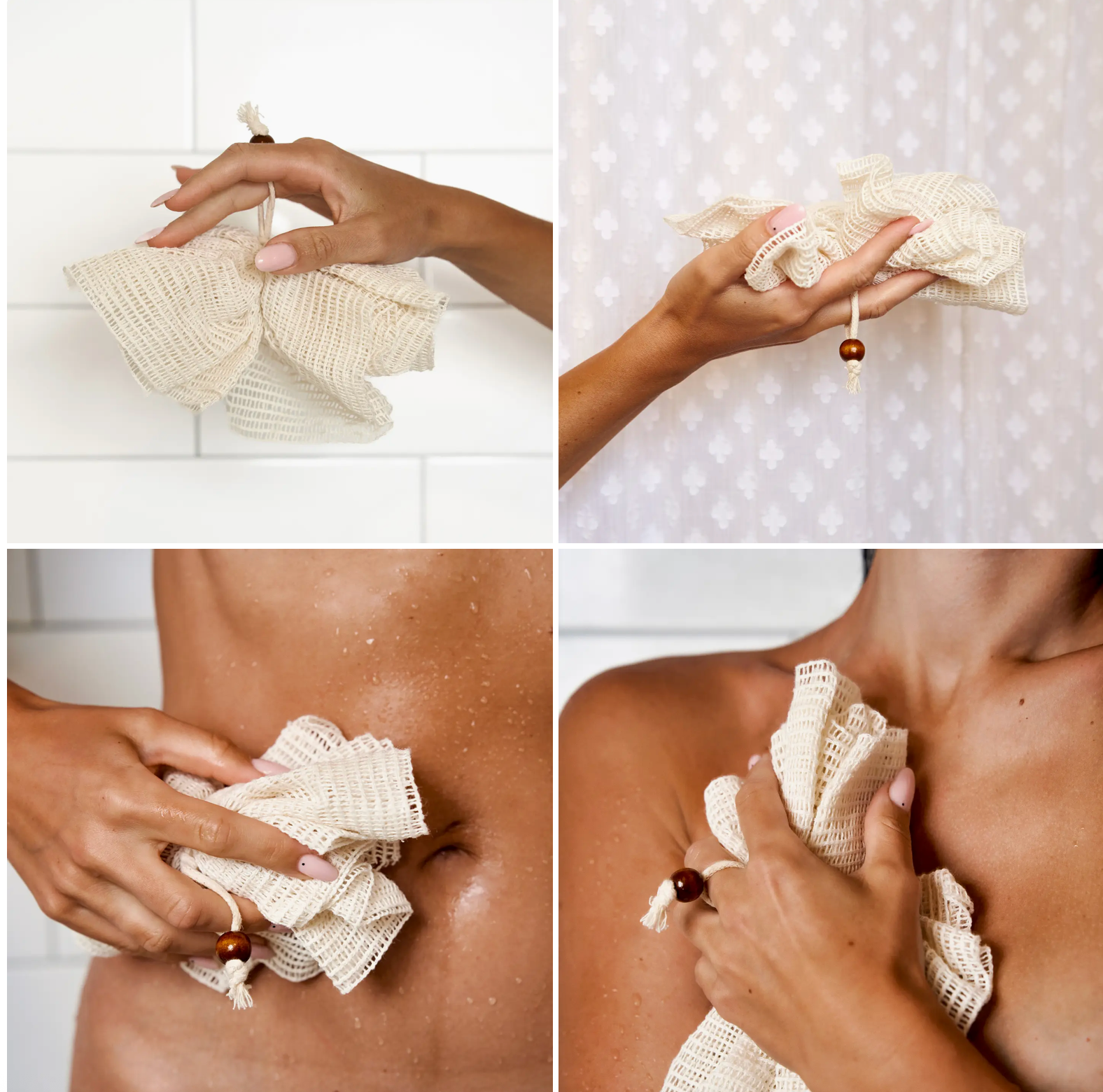 How to Use: Wet the pouf, apply your favorite body wash or soap, and gently massage over your skin in circular motions to create a rich lather and exfoliate.